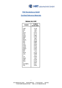 FQZ Brandenburg GmbH Certified Reference Materials Niobium Ore X 1807 Certified mean value Analyte CaO SiO2 Fe MnO P2O5 Al2O3 MgO TiO2 Nb2O5 ZrO2 ZnO V2O5 CeO2 La2O3 Nd2O3 BaO SrO Ta2O5 Y2O3 F K2O…